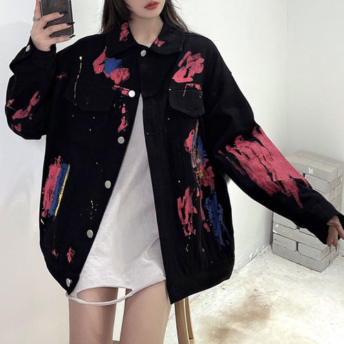 スプラッシュ柄プリントデニム ジャケットアウターコート原宿系 レディース