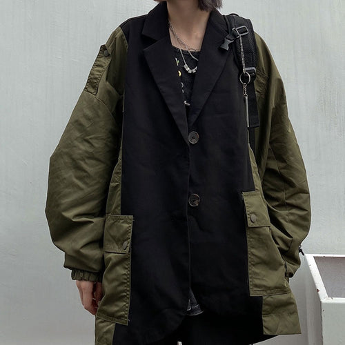 秋カジュアル切り替え重ね着風長袖ジャケットコートレデイース原宿系