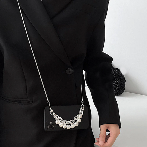 韓国っぽ バー チェーンパール付き ショルダーストラップiphoneケース iphone13ケース iphone14ケース