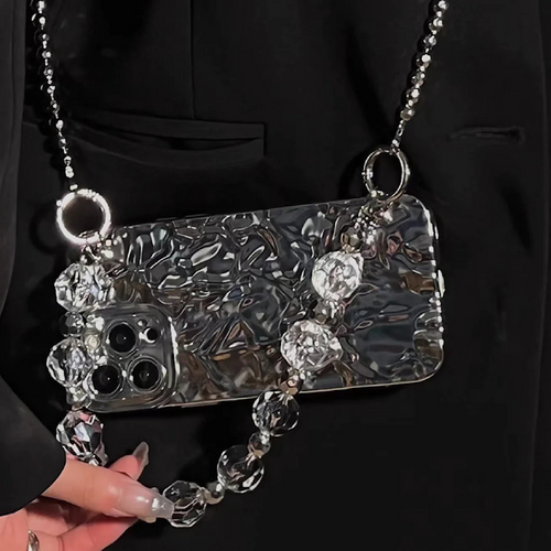 韓国ファッションストラップ付き メタリックケース チェーン iPhoneケース