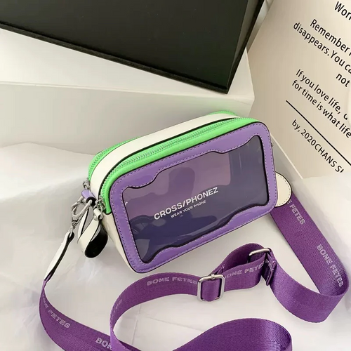 ファッションインコントラストカラーの透明クロスボディバッグ見せ方色々クリア ショルダーバック