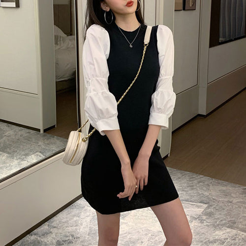 カジュアルブラウス パフスリーブニットシャツ可愛い