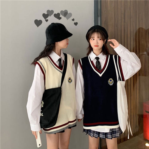 3点セット学生風アップベストとシャツとミニスカートカジュアルセットアップ