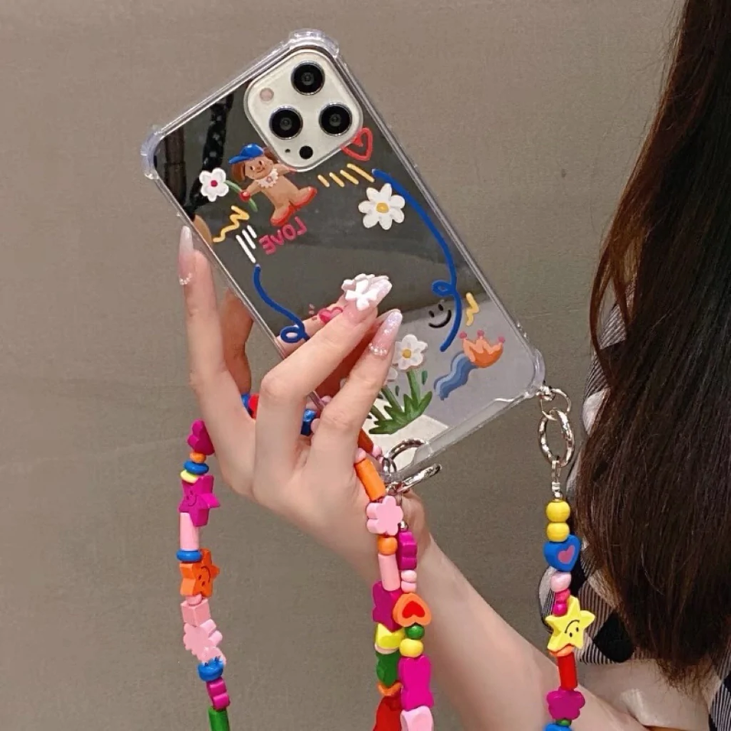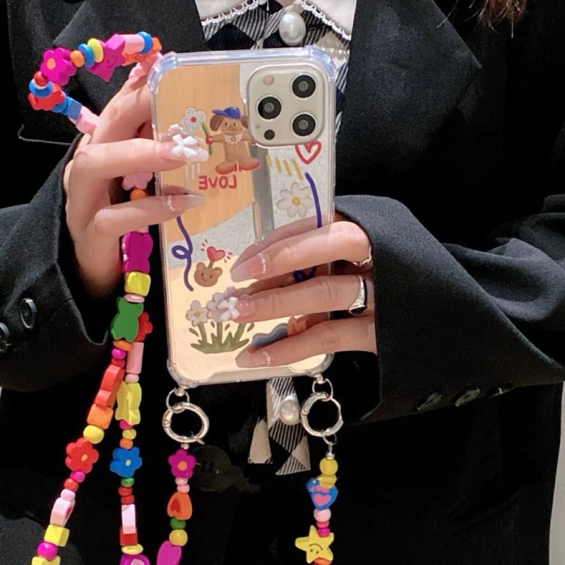 ハンドメイドのカラフルなチェーンが目を惹くミラーケースもキッチュな雰囲気で実用性も抜群