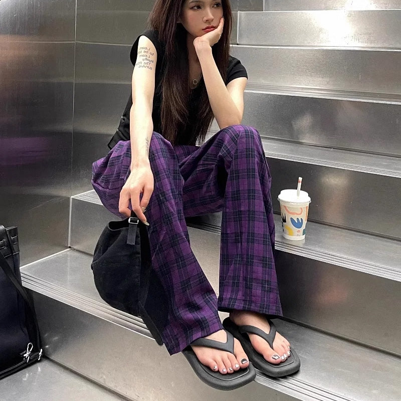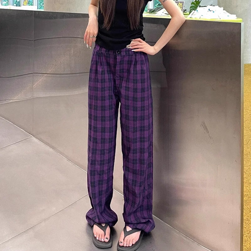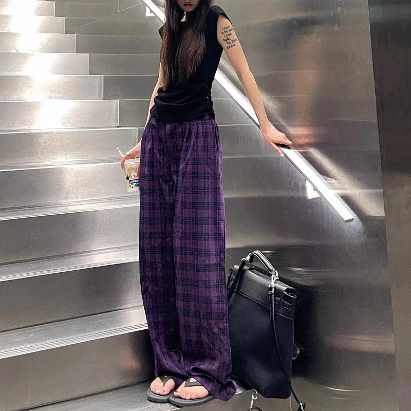 チェックズボンボトムスパンツハイウエストゴムロングシンプル大きいサイズゆったりダンス衣装ヒップホップHIPHOPレディースガールズストリート個性的原宿系