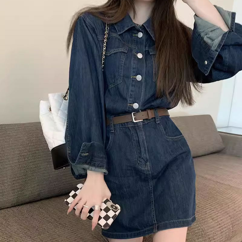 韓国ファッション ボタンフロント デニムドレスレデイーズカジュアルワンピース